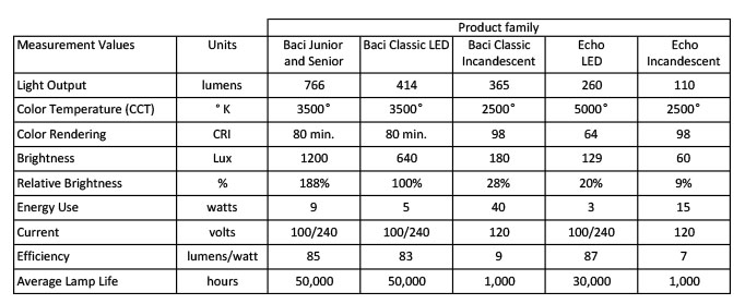 Our most popular Baci and Echo mirrors use LED light sources but some models are still available with incandescent lighting for those who need to match the look in an existing installation or are not yet ready for the newest technology. Our LED mirrors offer the following advantages: